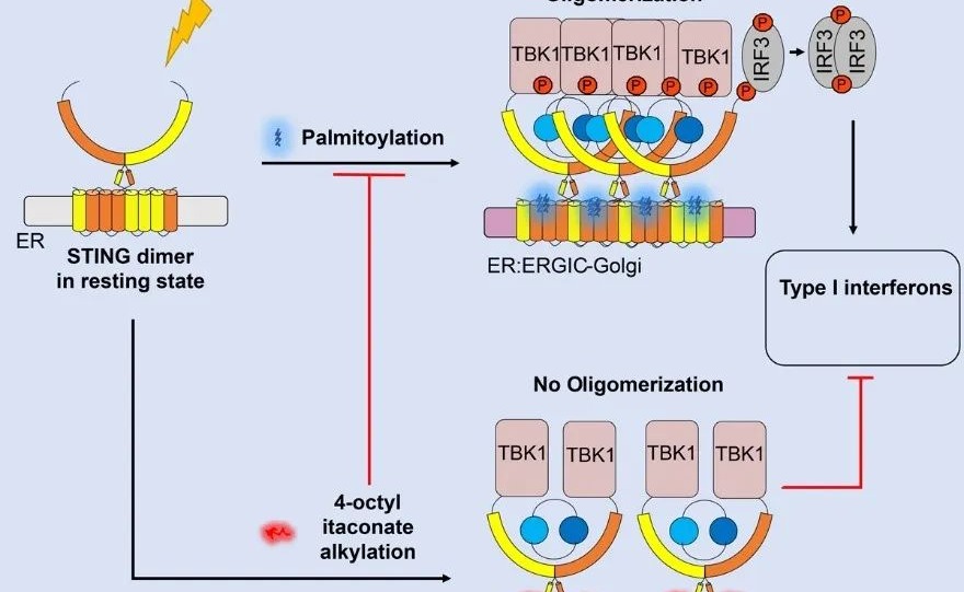 2023.08药学院尹航课题组发现4-辛基衣康酸阻断STING棕榈化抑制STING的激活