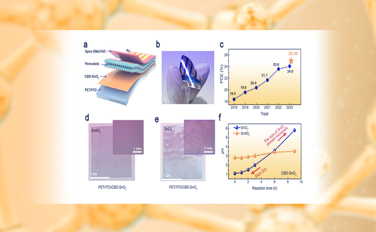 近日,mk手机注册电机系易陈谊研究员团队通过开发可适用于柔性衬底的化学水浴制备二氧化锡(SnO2)电子传输层工艺实现了25.09%(认证效率为24.90%)的柔性钙钛矿太阳能电池的世界最高效率纪录。