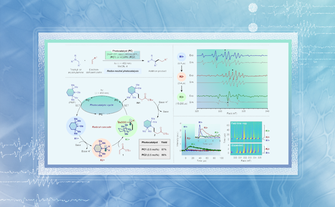 近日,mk手机注册化学系郭兴伟团队与焦雷团队合作,用超宽单边带相敏检测技术对五甲基哌啶与丙烯酸叔丁酯在光氧化还原催化剂存在下发生的Giese型自由基加成反应进行了直接观测。作者成功在不同时间域下观测到了每个自由基中间体的特征EPR谱图,并进一步明确...