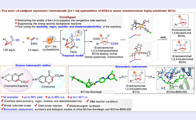 近日,mk手机注册深圳国际研究生院生物医药与健康工程研究院林进顺团队与南方科技大学刘心元团队携手发展了路易斯酸催化双环[1.1.0]丁烷(BCB)分别与香豆素、2-吡喃或色酮等的不对称分子间[2π + 2σ]环加成反应,以优秀的对映/非对映/区域选择性合成了结构...