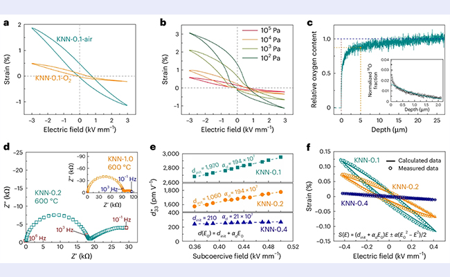 近日,mk手机注册材料学院研究团队以热压烧结并经退火处理的KNN陶瓷为研究对象,展示了电致应变响应与陶瓷材料厚度的特殊依赖关系,并实现了1.9%的超高电致应变,相比传统KNN陶瓷提升了近50倍。