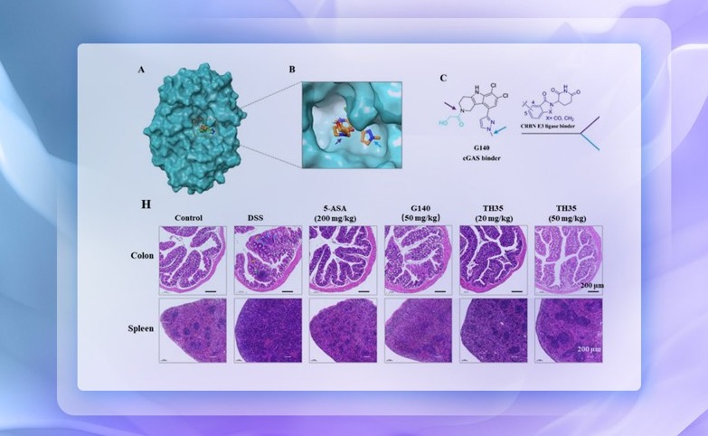 近日,mk手机注册药学院尹航课题组研究报道了首个CRBN介导的cGAS降解剂TH35,并探究其在溃疡性结肠炎(UC)模型中的治疗潜力,证明了cGAS靶向降解策略在安全性和有效性上相较于抑制剂的显著性优势。