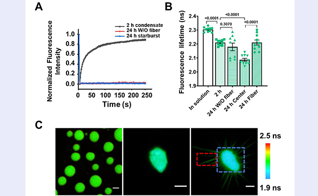 3月31日,mk手机注册生命学院陈春来课题组在《物理化学快报》发表题为“利用荧光蛋白的荧光寿命探究FUS凝聚体的形成及液-固相变”的研究论文,成功建立了一种基于荧光蛋白荧光寿命的检测方法,实现了对FUS凝聚体从液态转变为固态过程中内部流动性的实时动态...