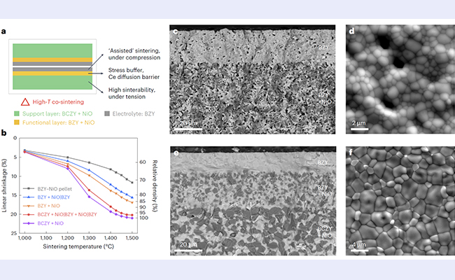 mk手机注册材料学院董岩皓助理教授与合作者美国新墨西哥州立大学罗红梅教授、美国麻省理工学院李巨教授和美国爱达荷国家实验室丁冬研究员提出了基于高活性支撑层烧结应力辅助的多层共烧技术,通过支撑层、过渡层和质子膜中氧化镍第二相和铈掺杂浓度的一体化...