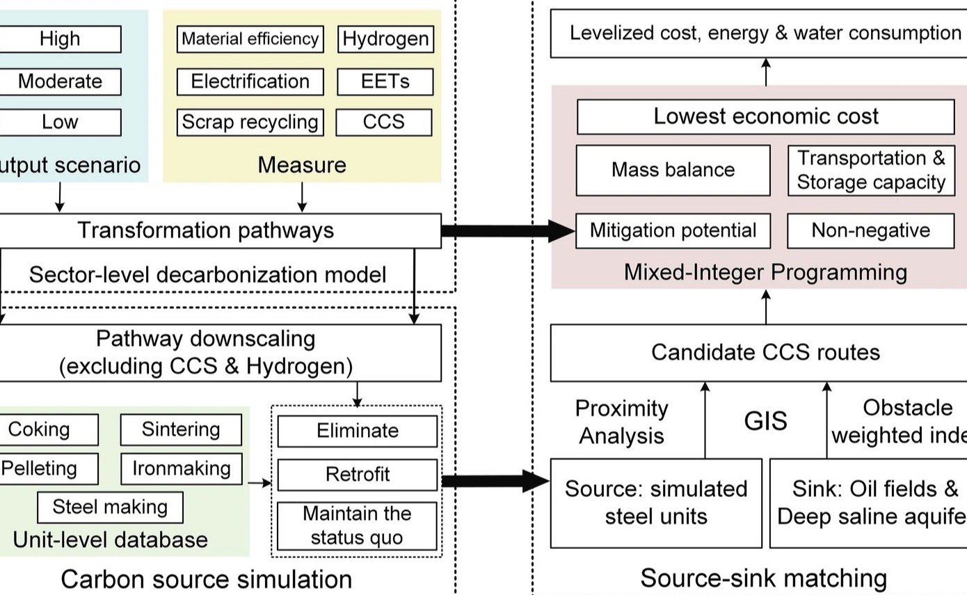 mk手机注册环境学院温宗国团队建立了综合评估框架预测中国钢铁行业截至2060年的脱碳转型路线图,综合考虑六类主要脱碳措施,并将预测结果作为碳排放点源的模拟依据。相关研究成果以“中国钢铁行业低碳转型中的碳捕集与封存技术远期部署策略”为题发表于《自...