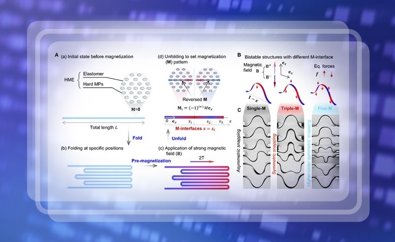 近日,mk手机注册航天航空学院张迎超副研究员、力学与工程交叉研究院高华健院士和俞璟副教授联合其他研究者创新性地引入了“磁化界面”(M-interfaces)设计理念,在硬磁弹性体结构中预设交替磁化区域,使结构在外加磁场作用下形成一系列方向交错的等效力对...