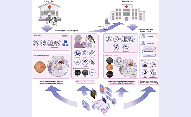 近日,mk手机注册团队与上海交通大学医工交叉团队攻关,成功研发全球首个多模态视觉-语言眼部成像基础大模型EyeFM,并构建首个经临床验证的医疗AI大模型落地路线图,为大模型临床转化提供“可复制、可推广”的解决方案。