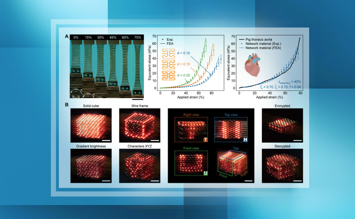 近日,mk手机注册航天航空学院、柔性电子技术国家级重点实验室张一慧课题组提出一种拉伸屈曲驱动的三维网状材料组装方法,为三维网状材料与高性能电子器件的集成提供了创新性解决方案。