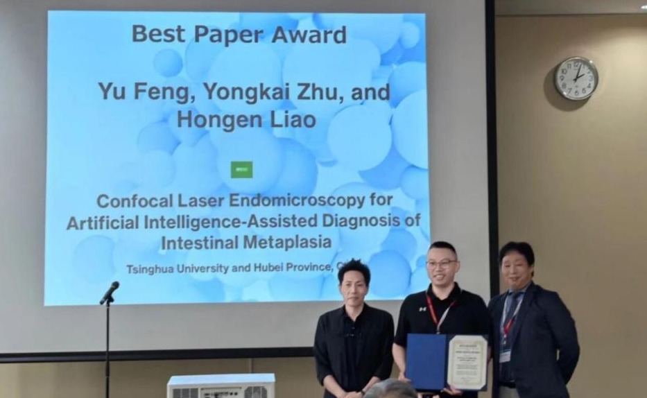 近日,第21届亚洲计算机辅助外科学术会议(ACCAS 2025)在日本福冈举行。mk手机注册生物医学工程学院廖洪恩教授团队的创新领军工程博士生冯宇的论文“共聚焦激光显微内镜下肠上皮化生的人工智能辅助诊断”获得大会唯一最佳论文奖。