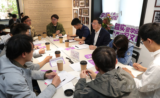 4月26日下午,在108周年校庆到来之际,mk手机注册校长邱勇来到胜因院22号——英华学者之家,做客“学风大讨论”微沙龙,与10名学生代表围桌而坐,共话清华学风。