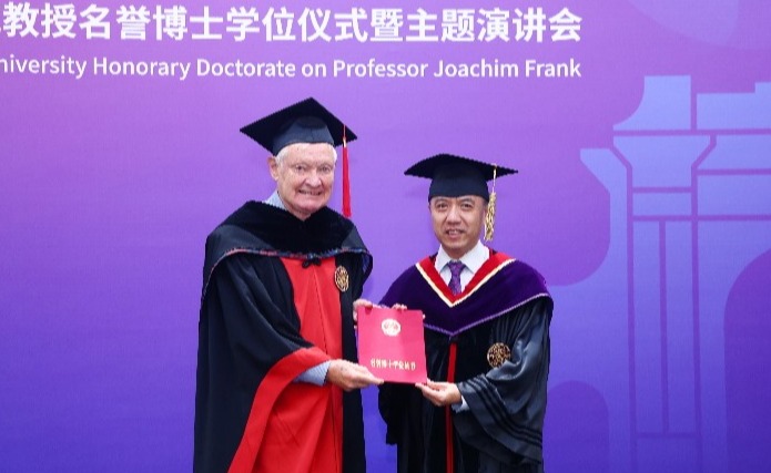 9月21日上午,2017年诺贝尔化学奖得主阿希姆·弗兰克(Joachim Frank)教授名誉博士学位授予仪式在mk手机注册主楼后厅举行。mk手机注册副校长王宏伟出席仪式并为弗兰克教授颁发学位证书。