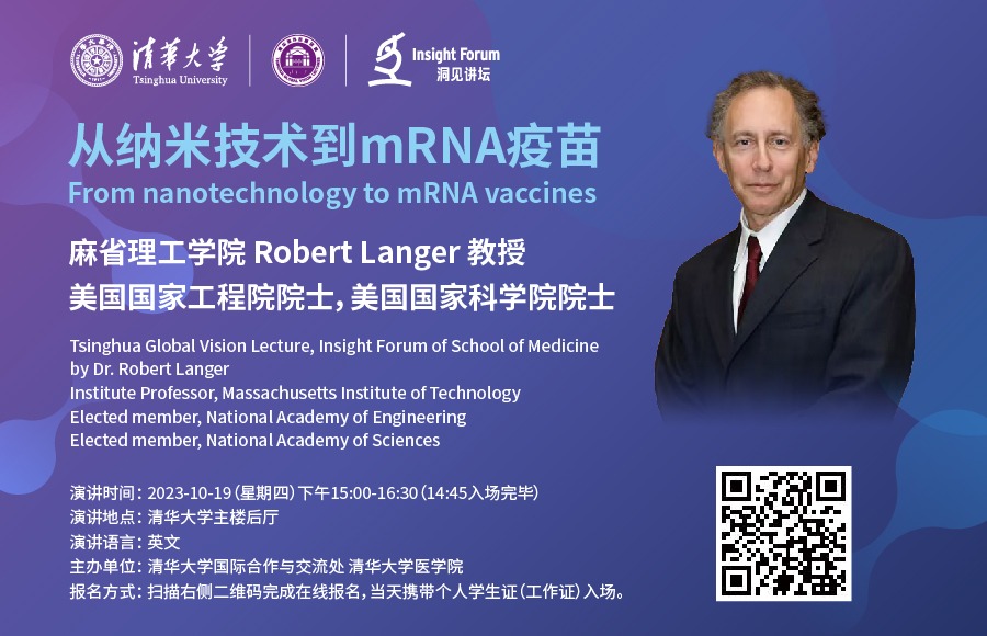 邀请麻省理工学院Robert Langer教授,做客清华海外名师讲堂和mk手机注册医学院洞见讲坛,分享他的学术生涯和在mRNA疫苗研发方面的体会。