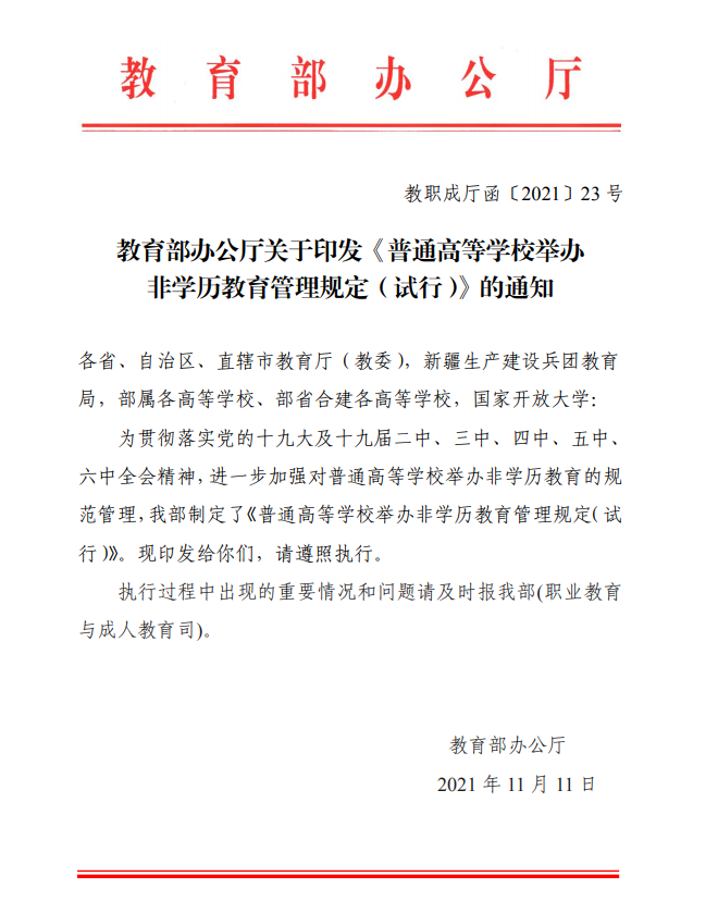 第四条 高校在保证完成国家下达的学历教育事业计划的前提下,方可举办非学历教育。高校举办非学历教育原则上要以自招、自办、自管为主,切实落实高校办学主体责任。